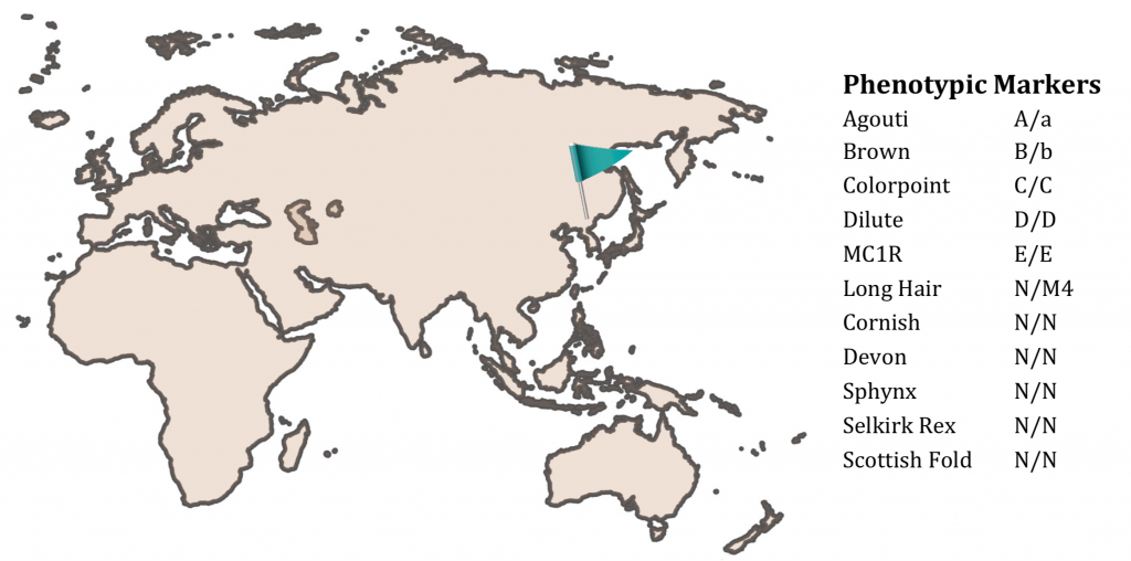 提出された猫のDNAを8箇所の地域からなる42の猫の集団を基にしたデータベースと比較しました。その地域とはヨーロッパ、東地中海、エジプト、アラビア海、イラン/イラク、インド、東アジア、そして東南アジアの8個です。また29の猫種と類似点の有無をチェックしています。29の猫種は以下になります。